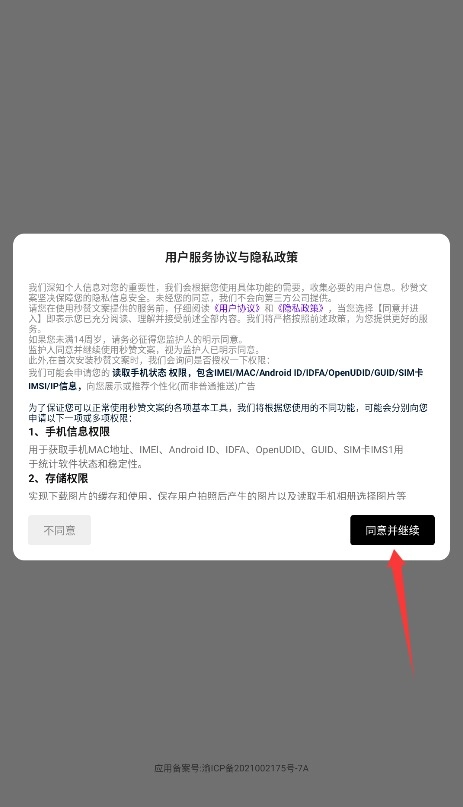 首次使用时,请仔细阅读平台的服务条款和隐私政策,确认无误后点击同意,即可继续进入应用。