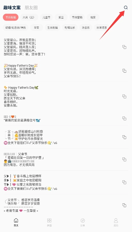 3、在文案首页,你可以浏览分类推荐的内容,也能借助搜索功能查找特定主题的文案素材。