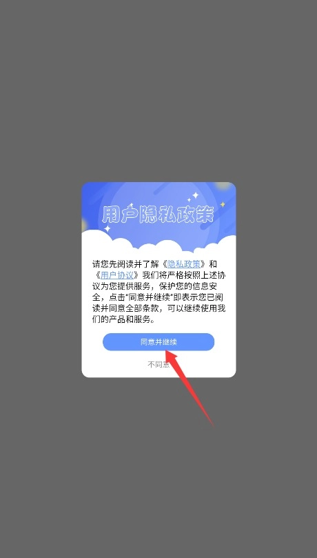 1、首次使用时,请仔细阅读平台的服务条款和隐私政策,确认无误后点击同意,即可继续进入应用。
