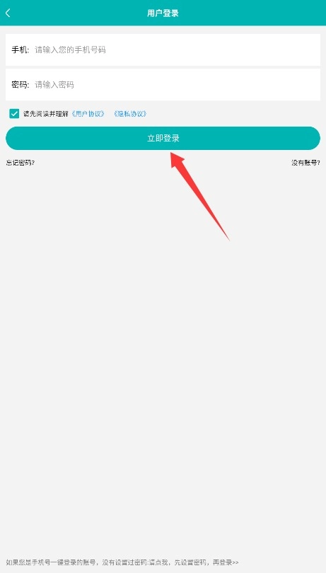 1、输入注册时使用的手机号与密码,勾选同意用户协议后,点击“立即登录”按钮以完成身份验证流程。