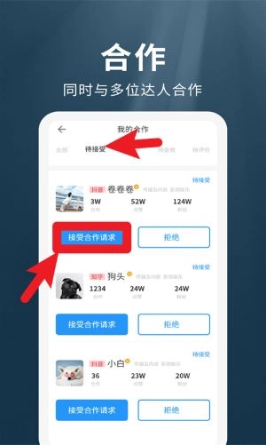 1、在合作页面能看到所有待接收的合作请求,点击“接受合作请求”按钮就可以开启正式对接流程。