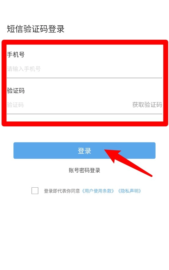 1、进入登录页面后,填写手机号与验证码,点击“登录”按钮就能完成短信验证登录流程。