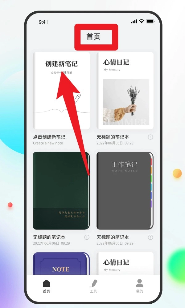 1. 进入首页后,点击左上角的“创建新笔记”卡片,就能开启一本新的手写笔记本,支持输入文字、插入插图或进行手写记录,适合用于写日记、打草稿或是记录课堂笔记。