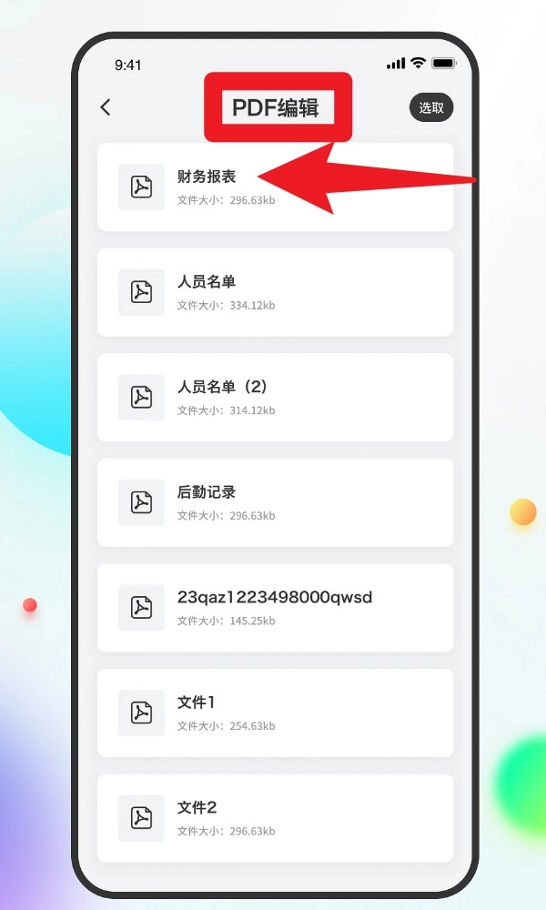 2. 进入“PDF编辑”功能板块,选择已有的PDF文件(例如“财务报表”),就能打开标注界面。该界面支持添加文本、圈注重点内容、划线标记等多种操作,无论是学习场景还是办公场景都适用。