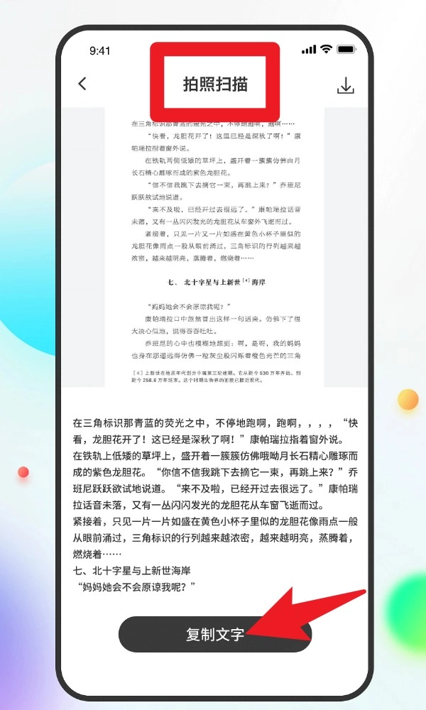 3. 在“拍照扫描”功能里,你可以导入或拍摄纸质资料,系统会自动识别其中的文字,还会提供“复制文字”按钮,这样就能方便地把纸面信息快速转换成电子版的笔记内容了。
