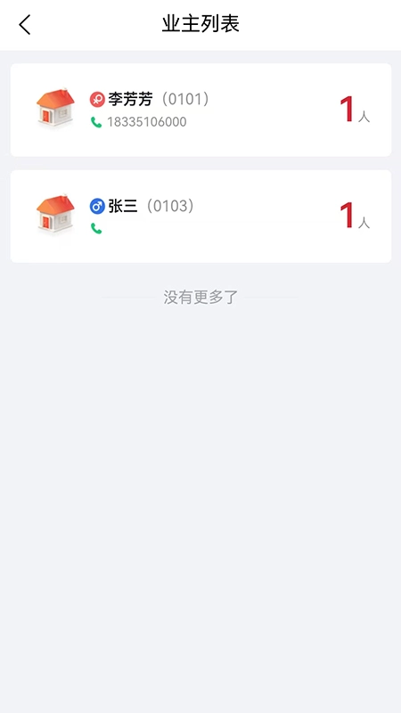 2、业主列表一目了然,手机查看即刻去进行掌握。