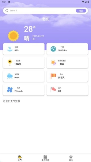 支持城市搜索功能,可同步关注其他地区的天气变化,位置切换能秒速完成,无需等待。