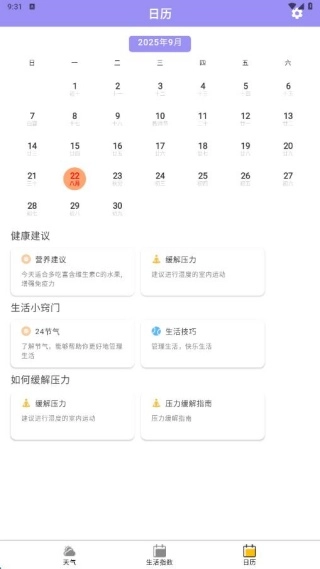 日历页面不仅可以查看阴历和阳历日期,还包含了一些生活小窍门。