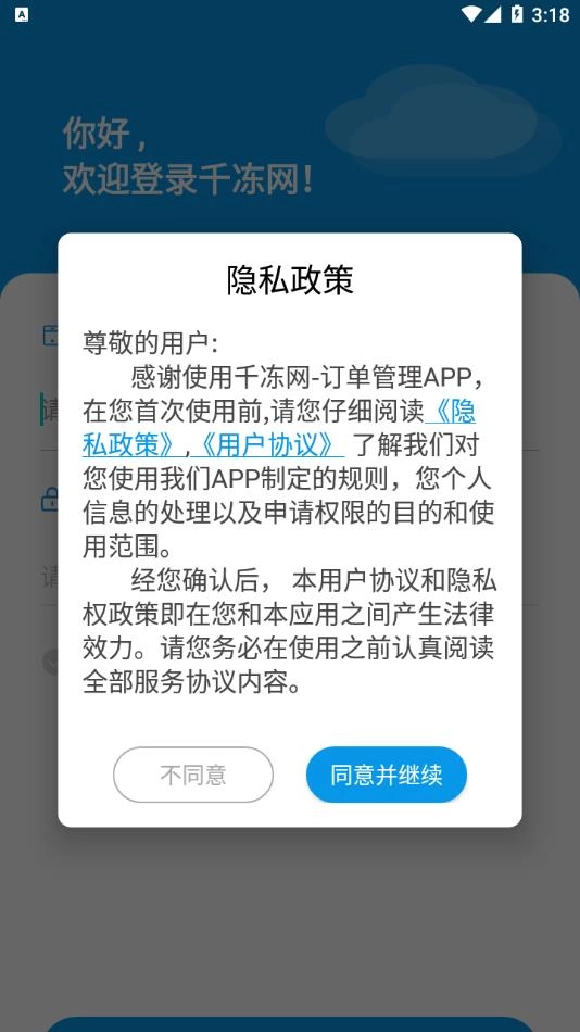 1、安装软件后打开,点击同意隐私政策。