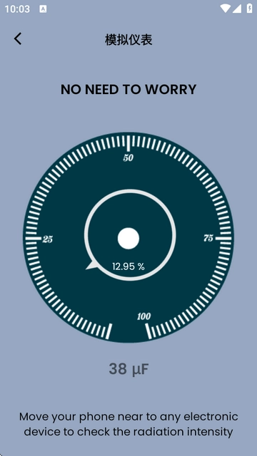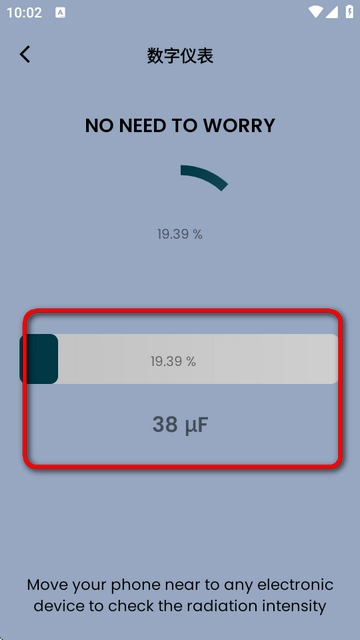 4. 只需把手机靠近任意电子设备,就能检测出辐射强度。 5. 数值越大,表明辐射强度越强。