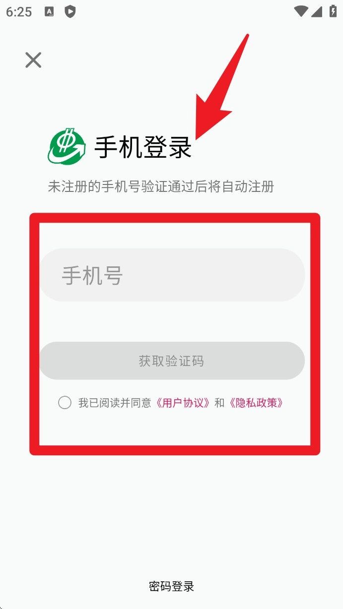 1. 打开应用程序,进入“手机号登录”界面,输入手机号码并勾选相关协议,随后获取验证码,以此完成登录操作,若为新用户则会自动完成注册流程。