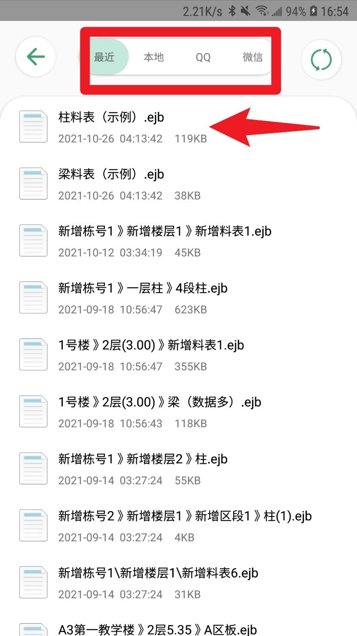 3. 点击顶部标签栏,就能切换查看本地、QQ、微信等不同路径下的料表文件,以便快速找到目标数据。