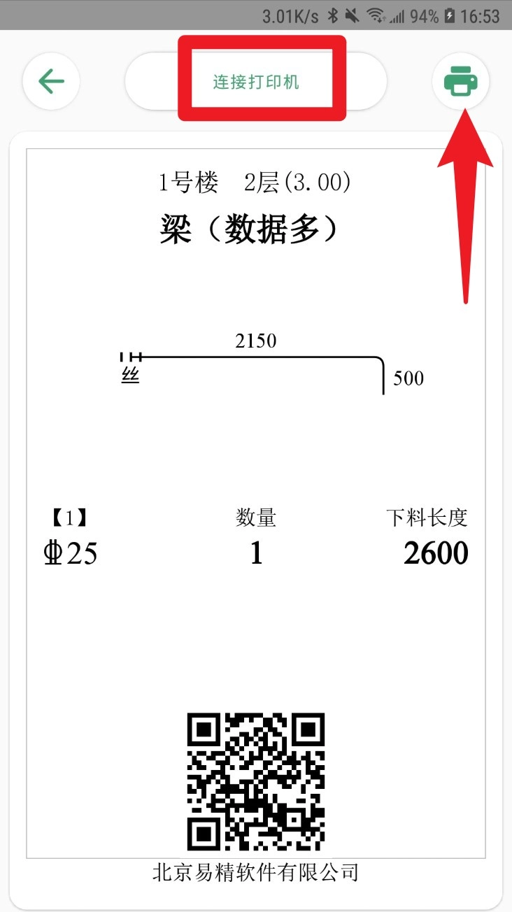 4. 打开料表后,点击页面右上角的“连接打印机”按钮,完成配对操作后,即可一键打印当前页面的内容。