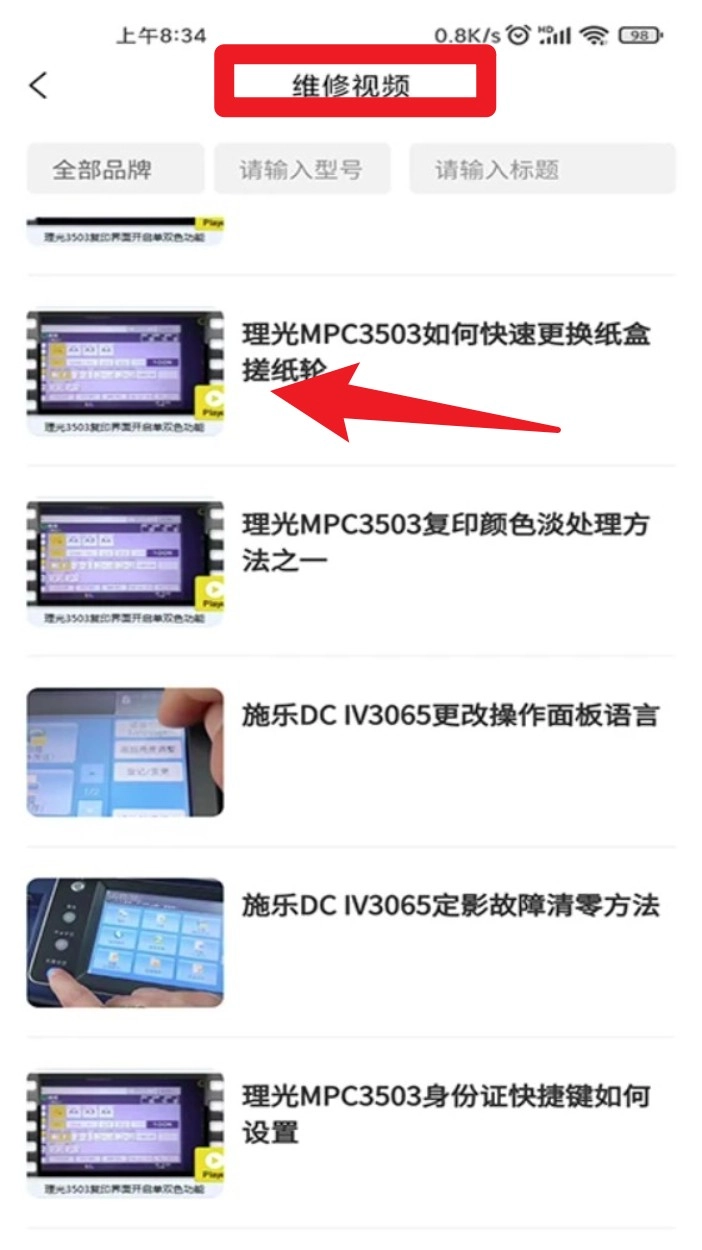 3. 进入“维修视频”板块,选定对应设备型号,就能查看相关教学视频,让辅助操作更清晰直观。