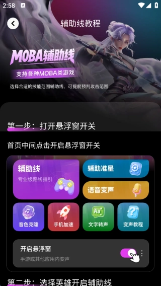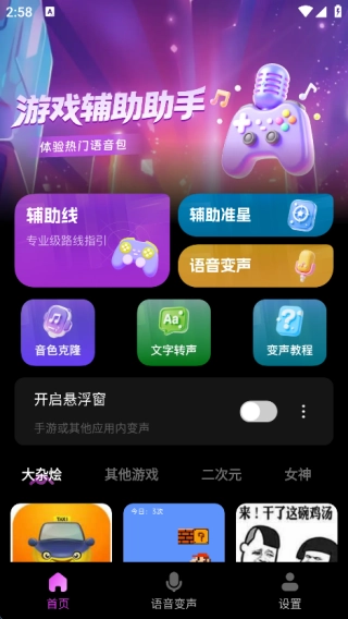 首页将提供辅助线、辅助准量、语音变声、音色克隆、文字转声以及变声教程等功能。
