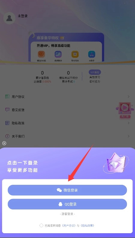 在登录页面,用户可以选择通过微信或QQ进行快捷登录,只需勾选同意相关协议的选项,即可完成第三方账号的授权流程。