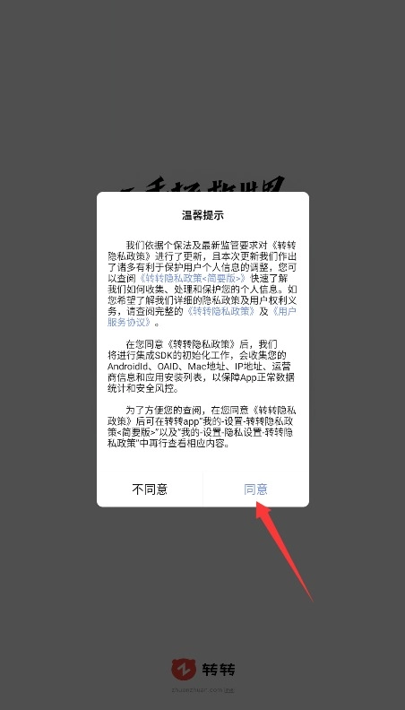首次使用时,请仔细阅读平台的服务条款和隐私政策,确认无误后点击同意按钮,即可进入应用。