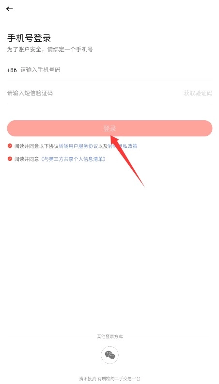 2、通过手机号接收验证码来完成登录验证,勾选同意相关条款后,点击登录按钮即可进入应用。
