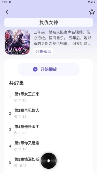 点击进入每本小说的听书页面,就能看到更完整的章节目录了。