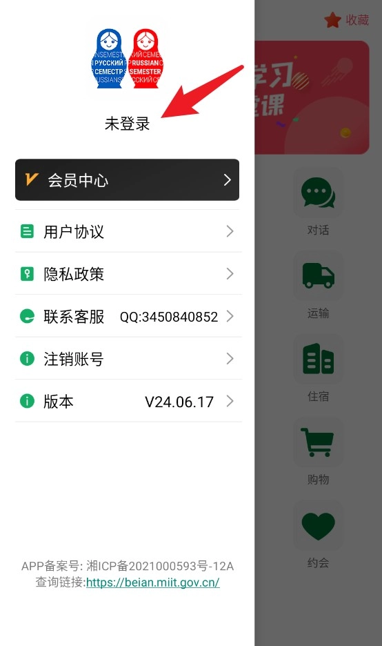 4、点击左上角菜单图标可进入个人中心,查看账户信息、联系客服、阅读用户协议等功能设置。