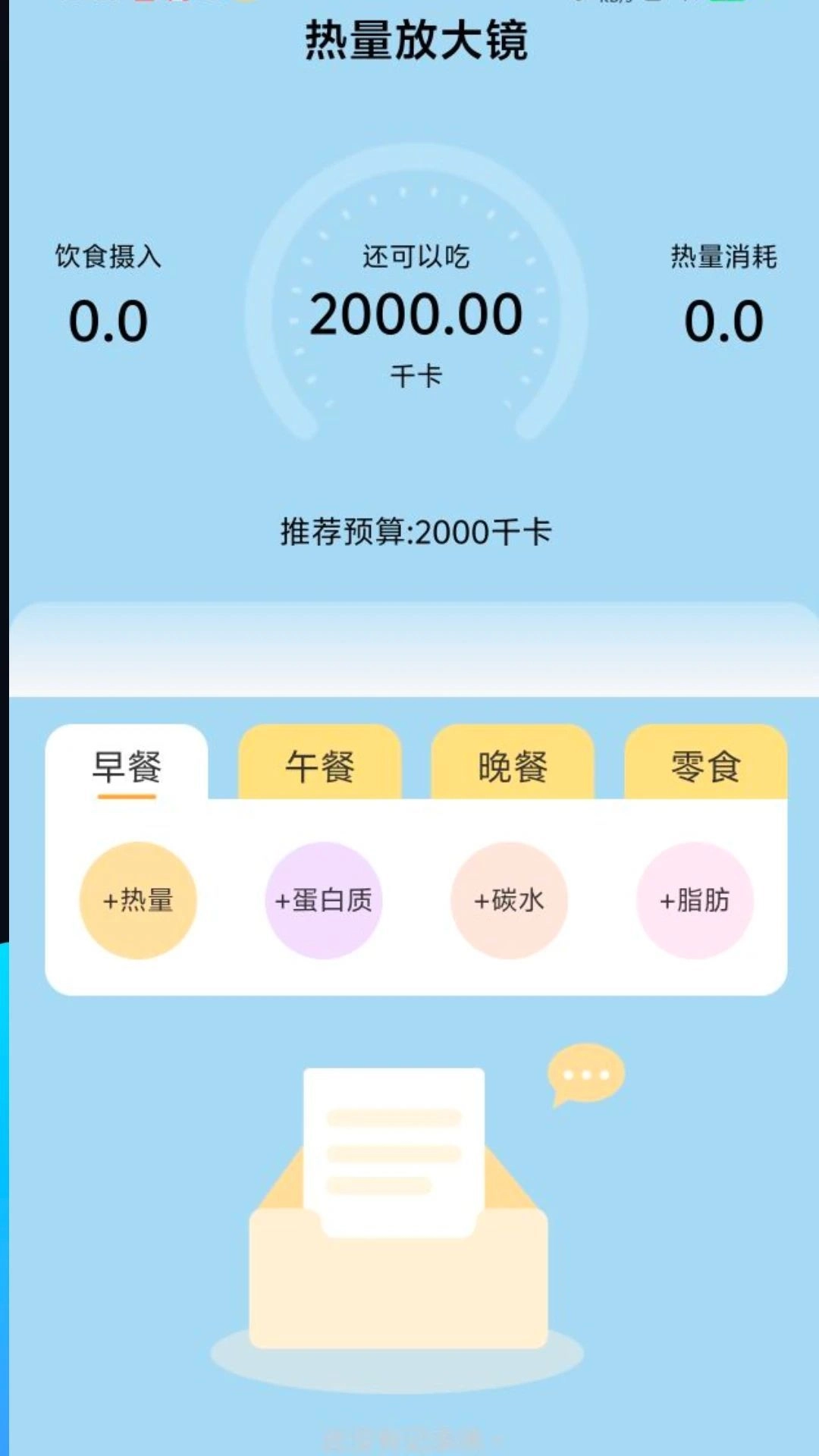 4、借助热量放大镜工具,能够展示用户的热量预算推荐,以此辅助管理热量摄入。