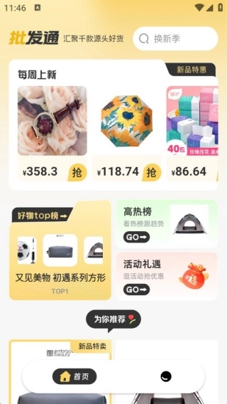 进入平台首页后,就能浏览各类低价商品,便于直接下单。