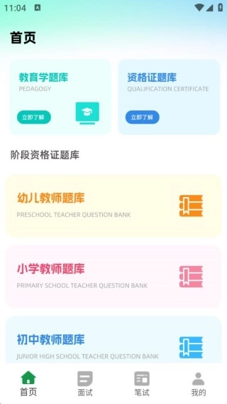 包含教育学题库、资格证题库以及各阶段教师资格考试题库,考生可进行大量题目练习。