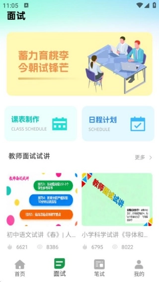 不仅有教师面试试讲的相关内容,还提供课表制作、日程计划等辅助功能,全方位服务面试备考。