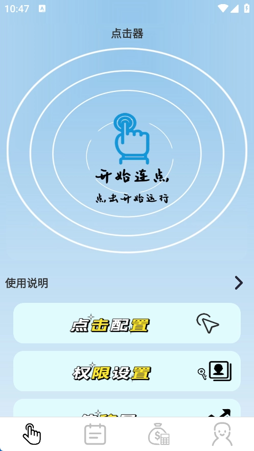 打开点击器主页面能查看详细的使用说明,还可以点击“开始连点”按钮启动运行。