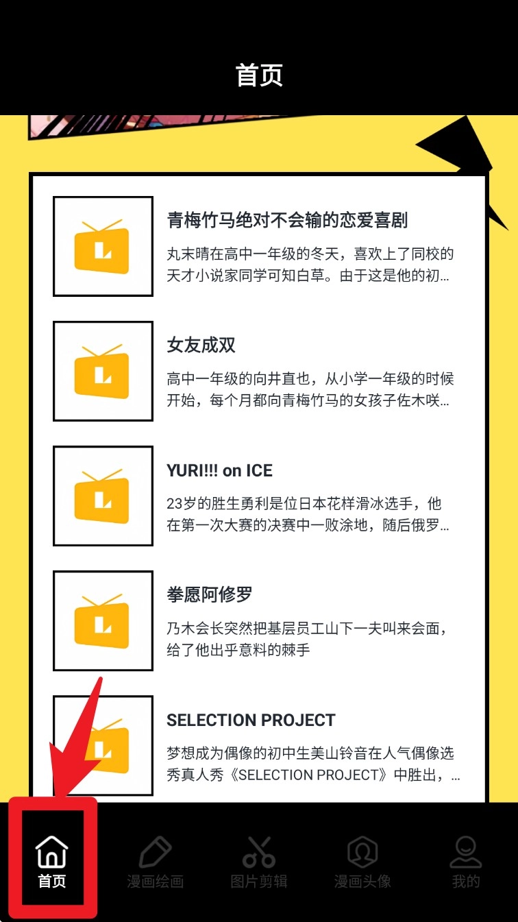 点击下方导航栏的「漫画绘画」按钮,就能进入创作模块,你可以挑选画布模板,开启绘制专属漫画作品的创作之旅。