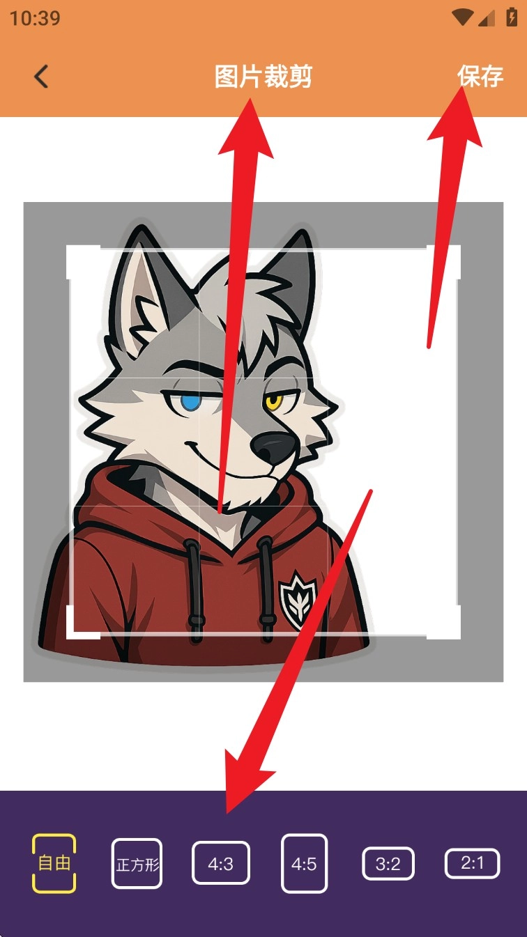 选择「图片裁剪」功能后,你可以手动调整裁剪框的比例,调整好之后点击右上角的「保存」按钮,就能把处理好的图像导出到本地了。