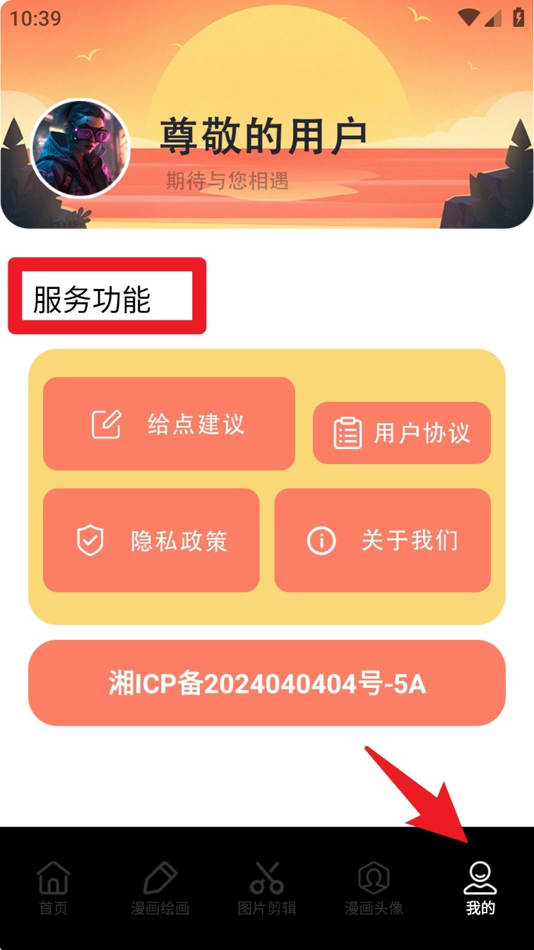 5. 点击导航栏最右侧的「我的」页面,能查看用户资料、建议反馈、隐私政策等相关信息,还可以管理个人功能与使用偏好。