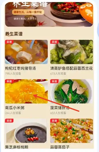 3、用户可以根据食材、功效、季节等关键词快速找到心仪的养生菜谱。