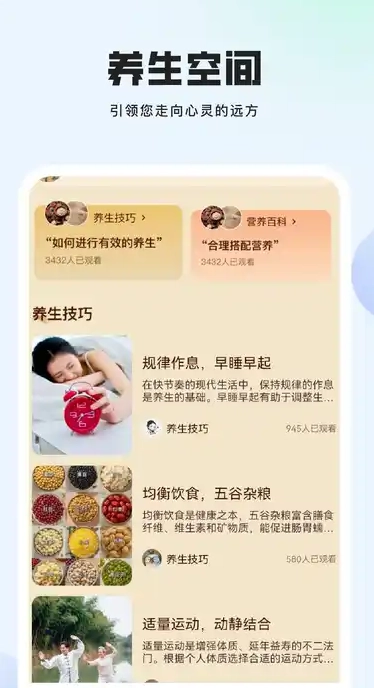 1、提供丰富的养生方法,包括四季养生、体质养生、艾灸拔罐、穴位按摩等内容。