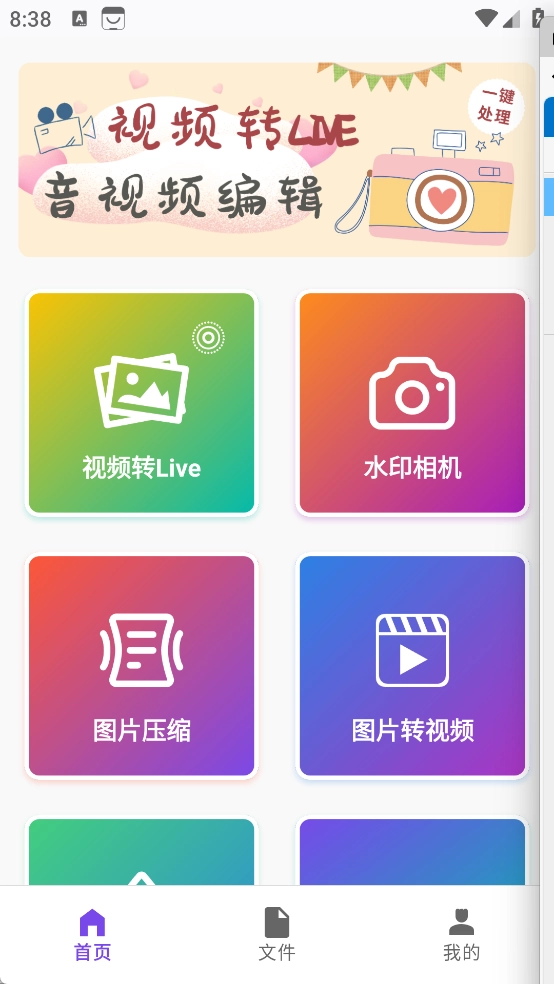 1、在首页中支持视频转LIVE、水印相机、图片压缩、图片转视频等功能;