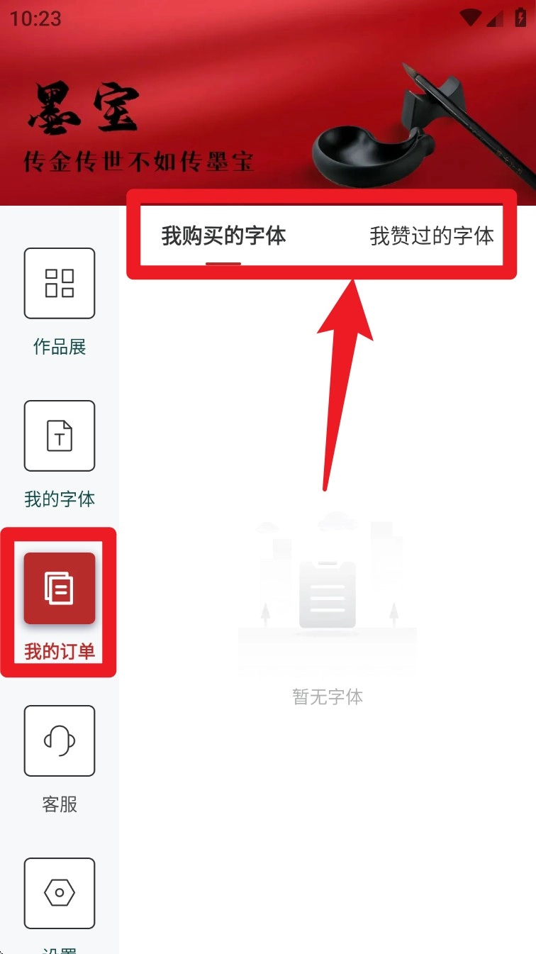 点击「我的订单」,就能查看自己购买或收藏的字体记录,还可以按照「我购买的」和「我赞过的」这两个类别来分别查看。