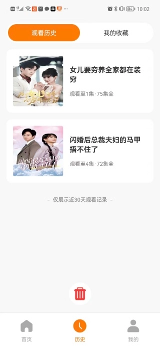 点击历史按钮,就能查看你之前的观看记录,同时也能了解到收藏的相关信息。