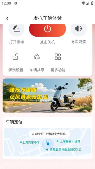 登录软件成功后,既能够虚拟体验软件的各项功能,也可以直接将自己的电动车与手机绑定在一起。