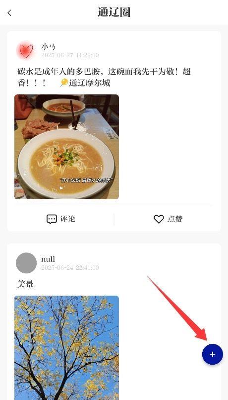 2、在首页界面找到并点击“通辽圈”功能版块,进入作品发布专区准备上传内容。