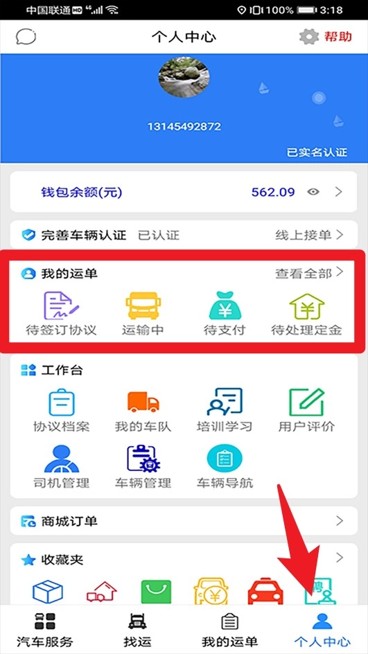 3. 在“找运”中查看当前运输任务,包括待签协议、运输中、待支付等运单状态。