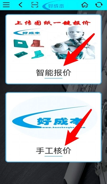 2、成功登录后进入首页,可点击“智能报价”或“手工核价”选项,依据自身需求选择相应的报价方式。