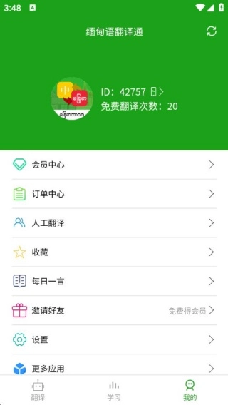 点击“学习”按钮,就能开启缅甸语的学习之旅,这里的词库资源会更加全面丰富。