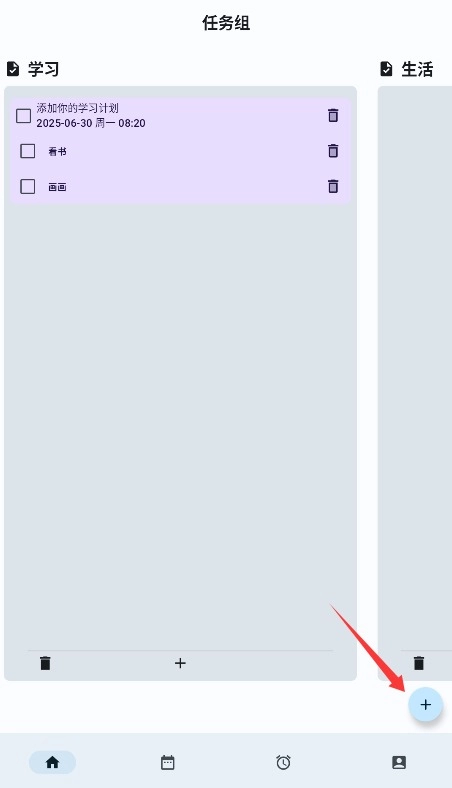 2、在主界面点击右下角的加号按钮创建新的任务列表,输入名称后就能顺利建立计划表格。