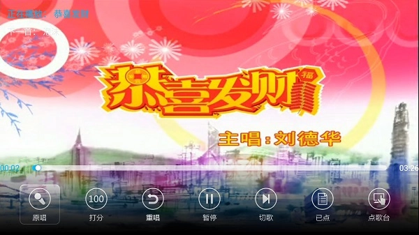 4. 当进入演唱画面后,点击屏幕可唤起操作菜单,在此菜单中能够进行原唱/伴唱设置、打分、重唱、暂停、切歌等一系列操作。