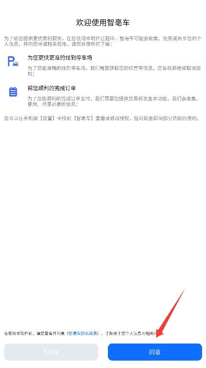 1、首次使用前请仔细阅读平台的服务条款和隐私政策,确认无误后点击同意按钮即可进入应用。