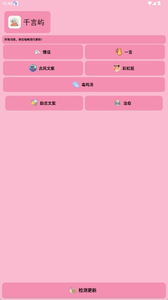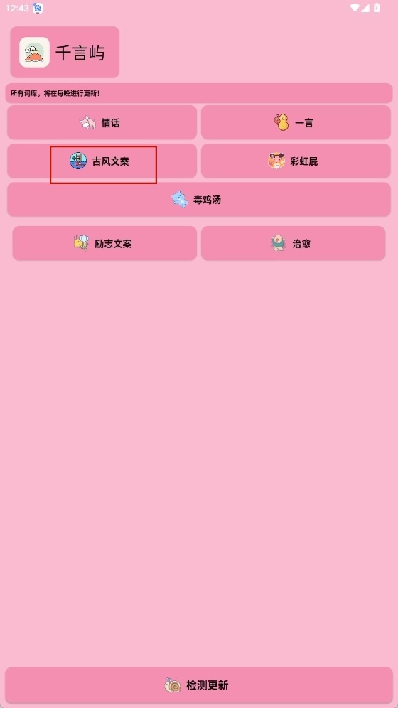 千言屿是一款实用性很强的工具,拥有自动生成优质文案的能力。它覆盖的文案种类十分丰富,像古风文案、情话、励志文案等都包含在内,能够满足使用者的大部分需求。要是用户想要创作社交媒体内容或者广告文案,通过这款软件可以随机生成不同风格的文字作为参考,从而给写作带来灵感。