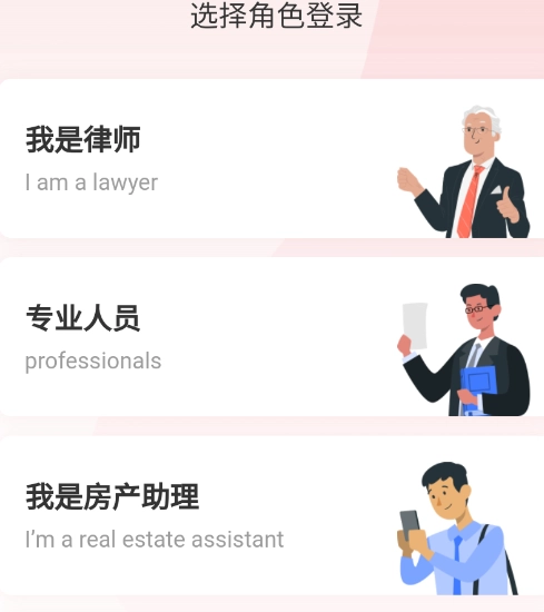 1、用户需在线注册个人账号,并在线选择登录的角色。