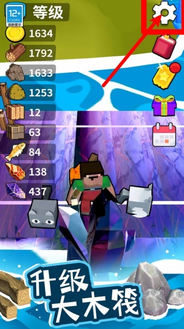 1.点击右上角齿轮图标进入设置界面,可调整游戏音效、语言和退出操作等基本功能设定。