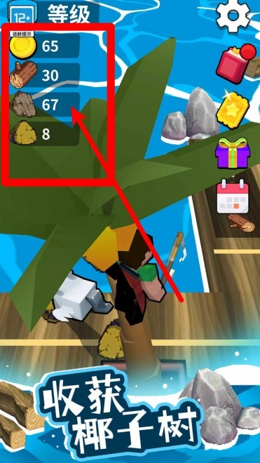2.通过收获椰子树可获得金币、木材、椰子和草等资源,用于扩建木筏和升级岛屿设施系统。