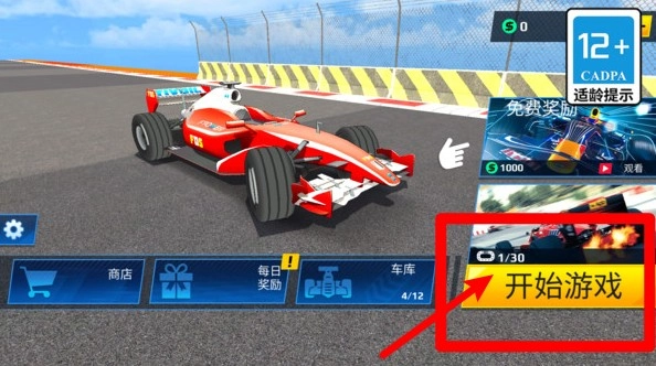 1.点击“开始游戏”按钮进入竞速赛道,赛前可查看当前关卡与奖励设置,确认后直接出发挑战。